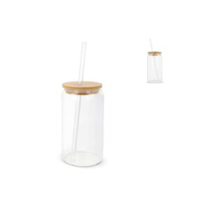 Verre avec couvercle en bambou et paille 450 ml