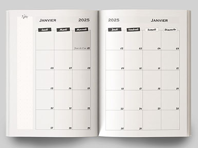 L’agenda est composé de 48 pages intérieures non personnalisables, imprimées en noir recto verso.