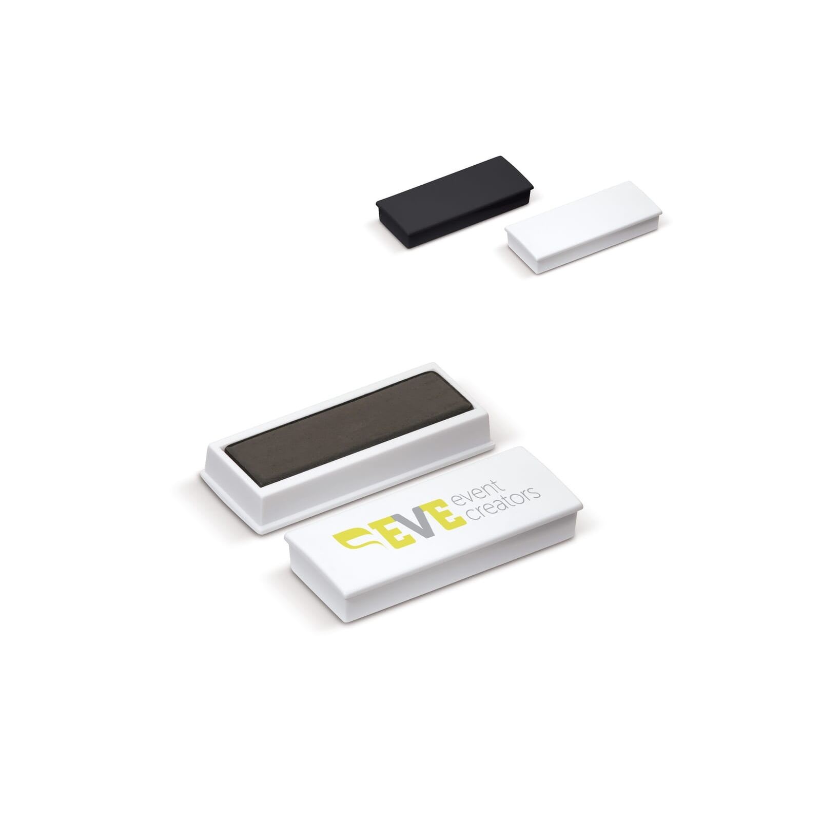Aimant de forme rectangulaire. Qualité : 6,0 N. Existe en noir ou en blanc. Marquage sur la 1ere face en digital (quadri) ou tampographie. Tous nos produits sont testés et certifiés, et répondent aux normes sociales.
