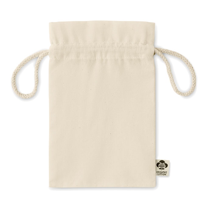 Petit sac à cordon en coton biologique. Taille environ 14×22 cm. 105 gr/m².