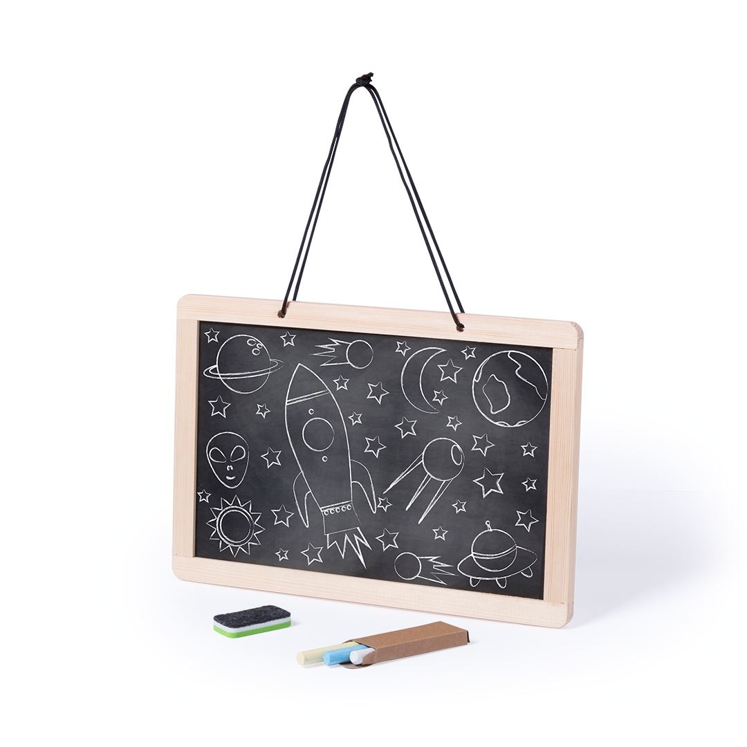 Ardoise double face à suspendre. Une face ardoise traditionnelle pour craie avec 3 craies fournies, et ardoise pour marqueur sur l´autre face – marqueur inclus -. Avec effaceur double: une face pour craie et l´autre pour marqueur.