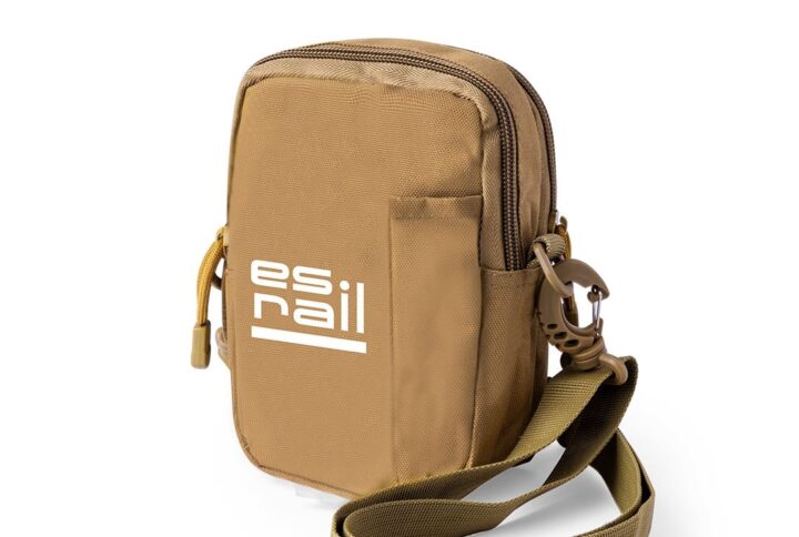 Sac banane en polyester résistant 800D et ton brun sable. Avec 2 poches de fermeture à glissière et sangles sur les poignées pour une ouverture confortable. Sangle réglable avec fermeture à boucle, présentée individuellement dans un sac recyclé.