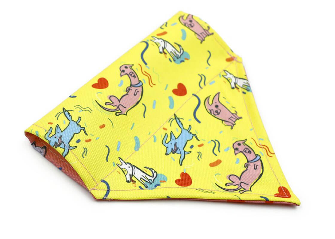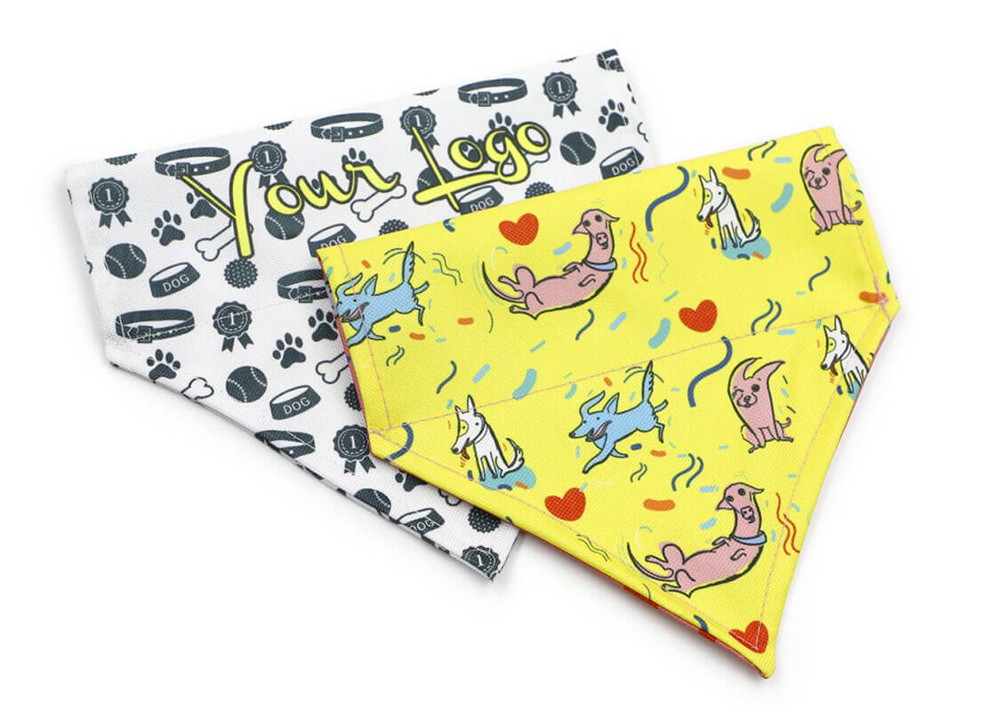 Bandana pour chien personnalisable par sublimation. Accessoire élégant et fonctionnel alliant esthétique et possibilités de personnalisation complètes. Fabriqué en polyester de haute qualité, ce bandana est imprimé par sublimation en couleurs éclatantes, garantissant que votre logo ou motif reste intact et éclatant, même après de nombreuses utilisations. Grâce à ses tunnels réglables compatibles avec les colliers de 20 à 30 mm, il s’intègre parfaitement aux accessoires pour animaux. Idéal pour promouvoir votre marque dans les espaces publics, lors d’événements et lors de promenades quotidiennes, ce bandana est à la fois pratique et promotionnel.