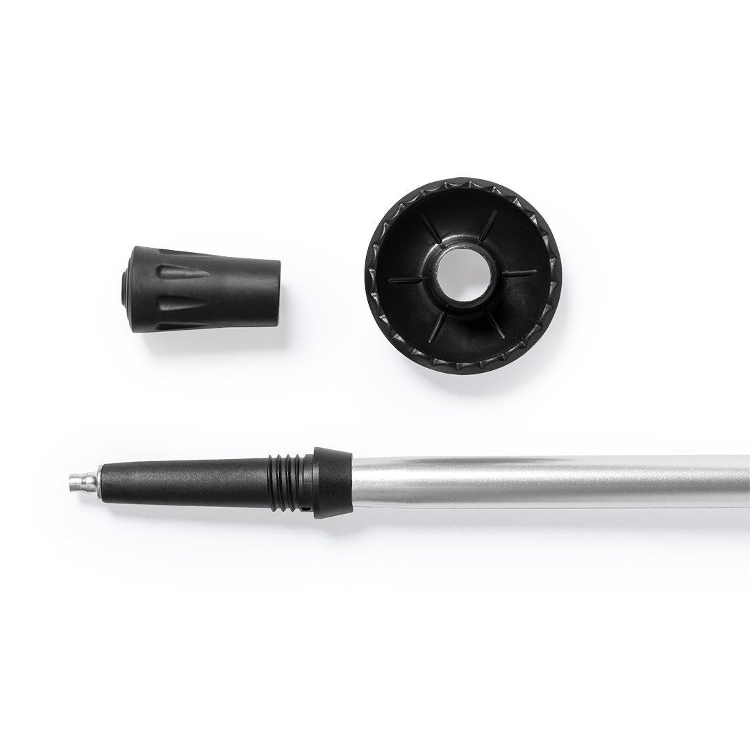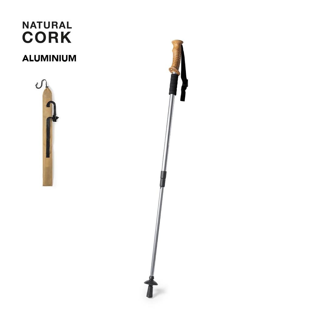Bâton de sport pliable et télescopique. Fabriqué en aluminium résistant, avec une poignée ergonomique confortable en liège naturel et un accessoire en mousse pour reposer vos mains. Mécanisme d’amortissement, avec renfort antidérapant à l’extrémité en contact avec le sol et sangle de sécurité réglable. Réglable en hauteur, il comprend un accessoire pour la neige et est présenté dans un étui de transport de couleur naturelle, avec une bandoulière pour un transport facile et une fermeture éclair noire.