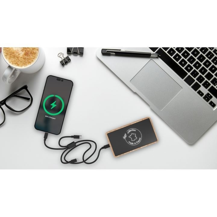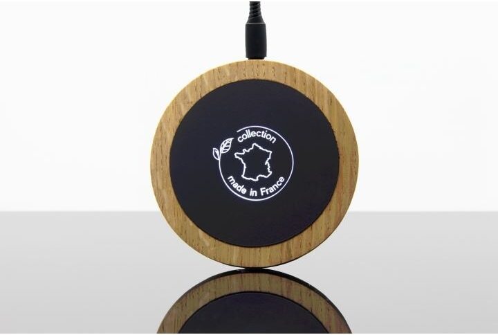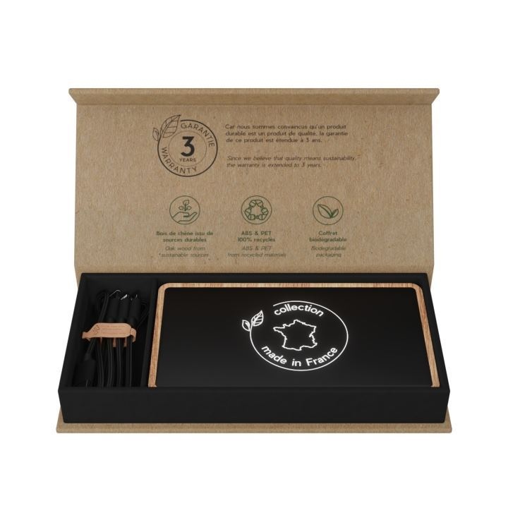 Batterie de secours lumineuse 5000 mAh Made in France en bois de chêne français, assemblé et personnalisé en France.