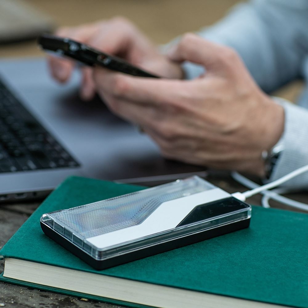 Entrez dans le monde de la commodité avec notre powerbank de 10000mAh. Équipé de 2 ports USB C + 1 port USB A / Puissance de sortie maximale de 18 W ( fast charge), il recharge rapidement vos appareils. Rechargez votre téléphone 4 à 5 fois en une seule charge, et restez connecté. Son écran LCD vous permettra également ce connaitre le temps de charge restant. Fabriqué à partir de matière recyclée : 100% rABS (plastique recyclé) . Livré sous boite carton seconde vie que vous pourrez transformer en support téléphone.