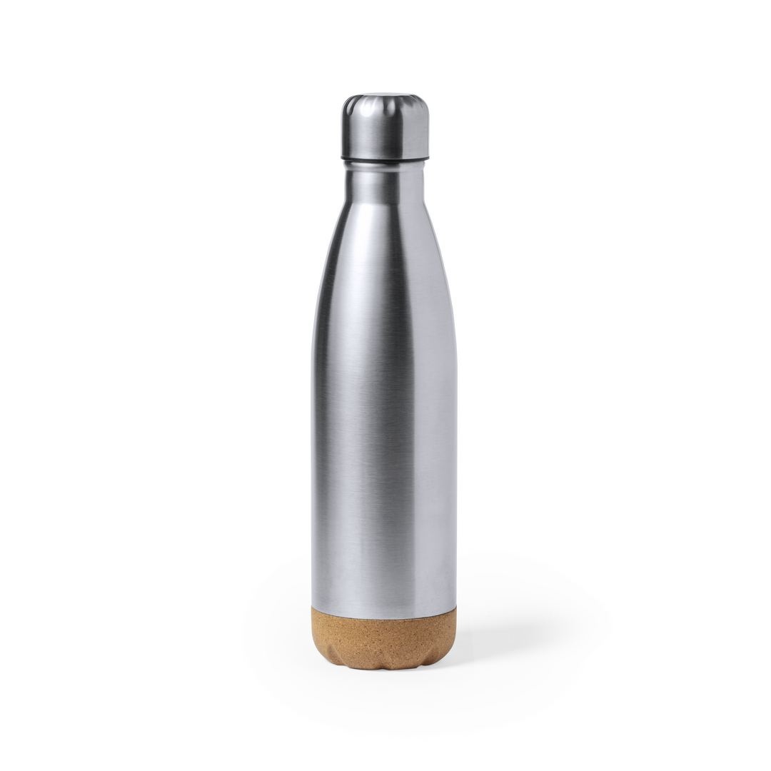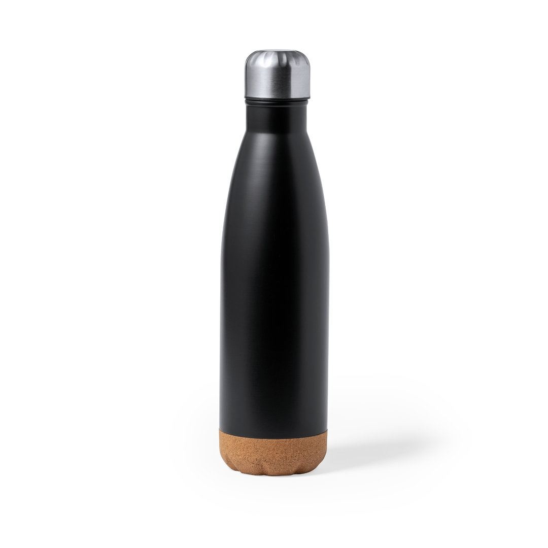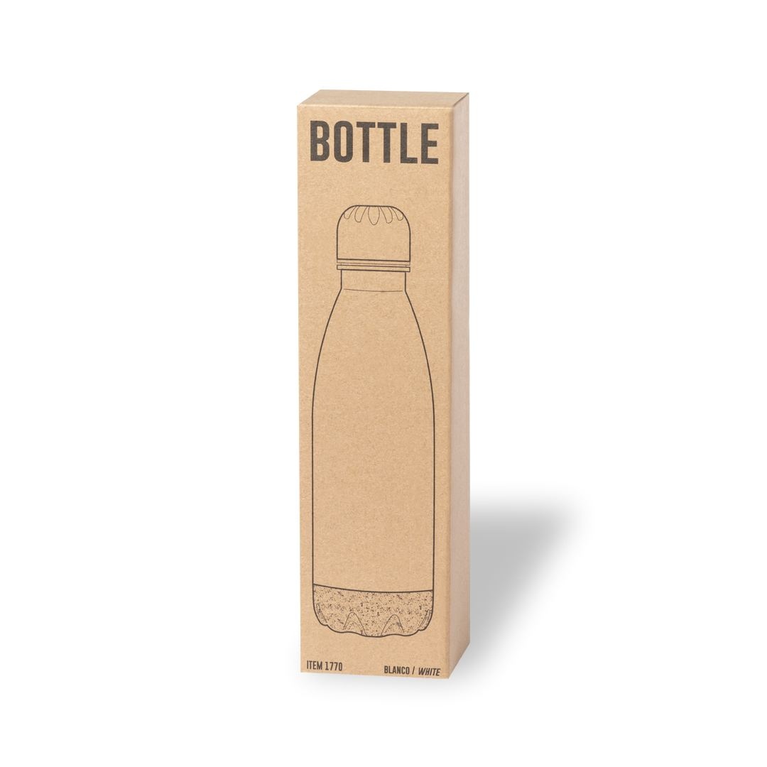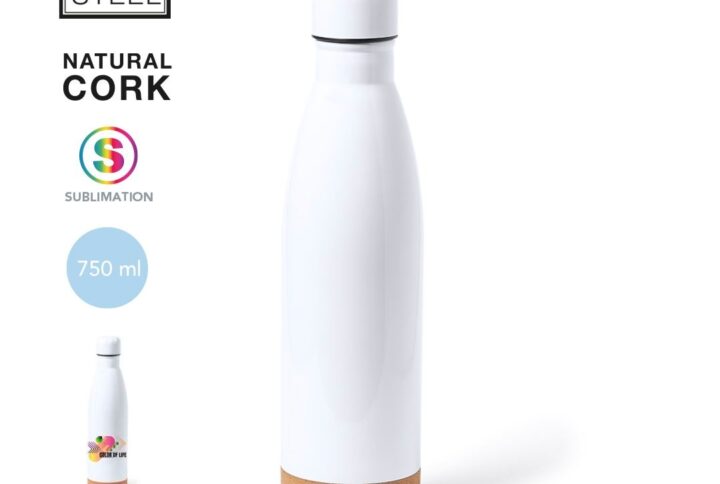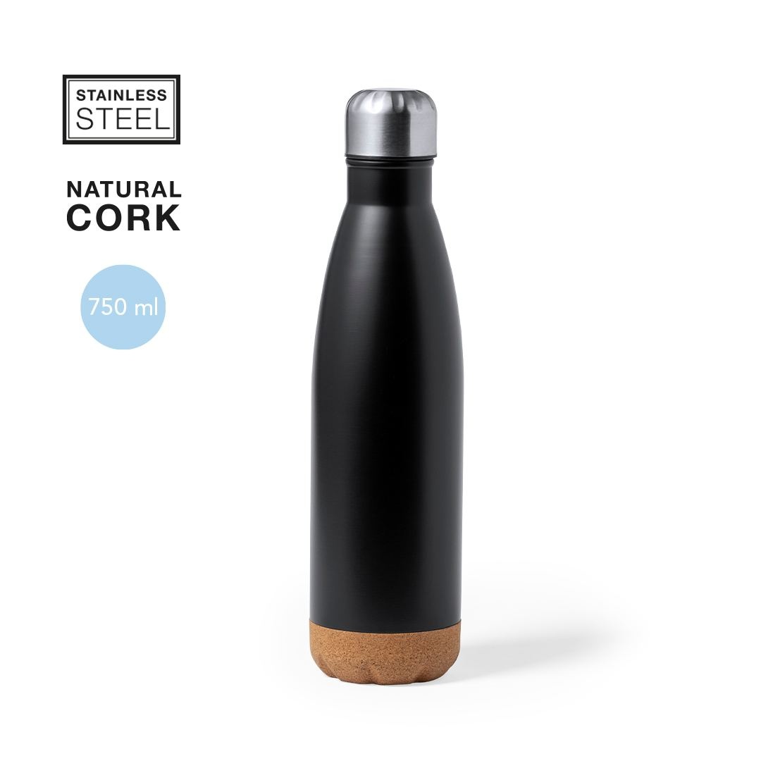 Bouteille d’une capacité de 750 ml, fabriquée en acier inoxydable. Avec une base en liège naturel et un bouchon à vis, sans BPA. Disponible dans une large gamme de couleurs satinées et présenté dans une boîte individuelle en kraft design.Manuel d’instructions disponible en espagnol et en anglais.
