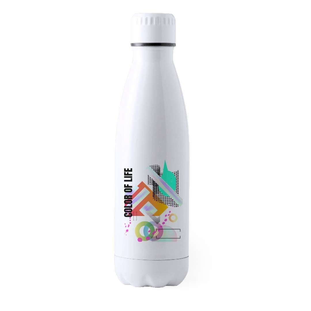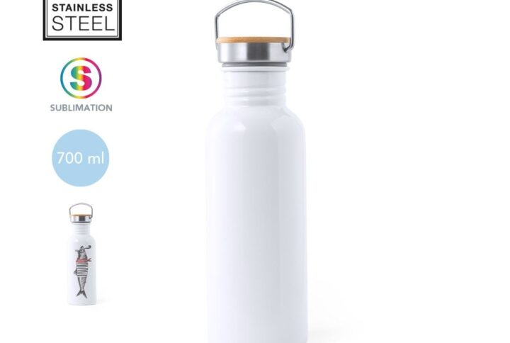 Bouteille d’une capacité de 700 ml avec corps en acier inoxydable. Couleur blanc brillant, avec couvercle de sécurité. Présenté dans un coffret individuel et design.