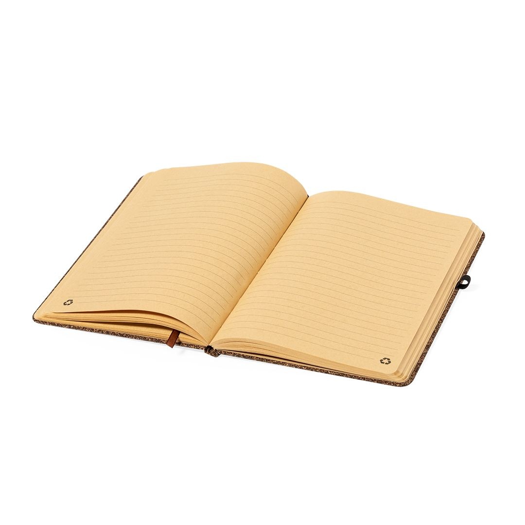 Bloc-notes en fibre de café et liège. Couvertures rigides, 80 feuilles kraft recyclées, avec mise en page à ligne unique. Comprend un marque-page assorti et un porte-stylo élastique. Avec logo distinctif en fibre de café sur la couverture arrière.La fibre de café est une solution circulaire, obtenue à partir des déchets générés lors de la production de café. Une alternative durable, favorisant la réduction de l’utilisation de plastique, économisant de l’énergie lors du processus de fabrication et contribuant à la protection de l’environnement.