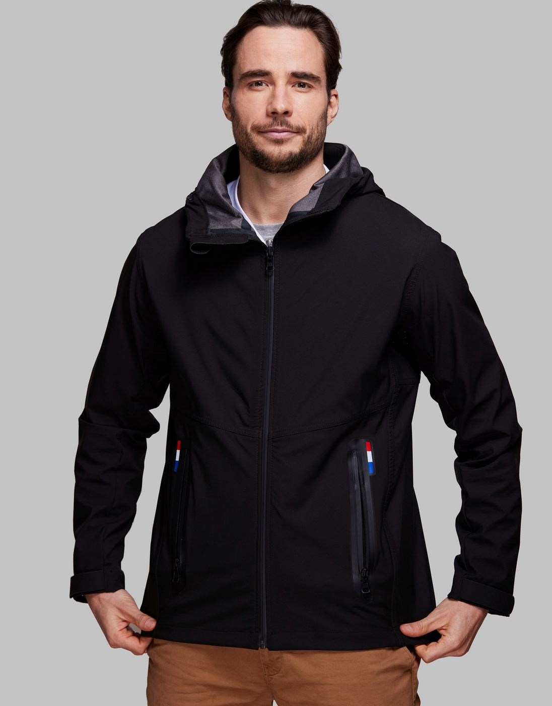 Coupe-vent ultra technique Homme Made in France en polyester recyclé. Confectionné dans l’Oise, ce blouson coupe-vent est composé à 50% de polyester recyclé. Composition globale : 100% Polyester dont 50% de polyester recyclé. Softshell imperméable et respirante 2,5 couches avec membrane en TPU. Colonne d’eau 10000/3000 WP/BR. Construction soudée et étanche. 2 poches mains soudées et étanches avec fermeture YKK waterproof.. Zip central YKK imperméable. Coupe droite. Aération prévue sous les bras et au niveau du protège menton avec découpe laser. Accroche Velcro en bas de manche. Capuche élastiquée profonde.