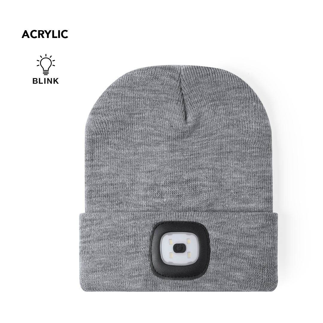 Bonnet de sport double épaisseur avec voyants lumineux intégrés offrant 4 modes d’éclairage LED différents. En matière acrylique douce et confortable. Taille 58. Rechargeable par USB