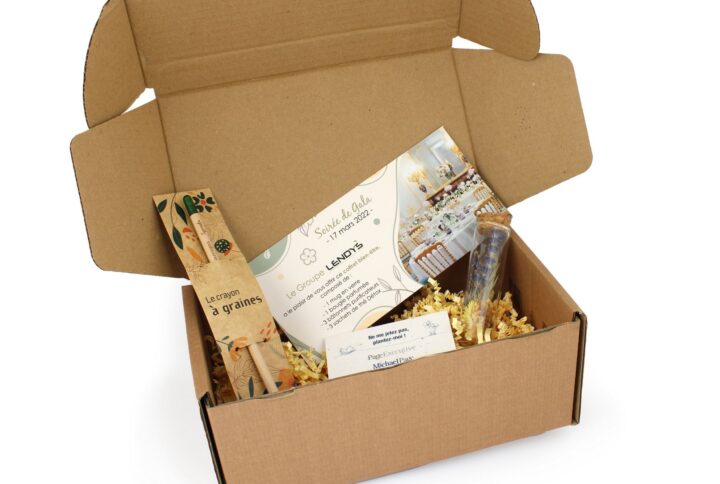 • Carte en papier 350 gr/m² ou sticker à l’intérieur de la box