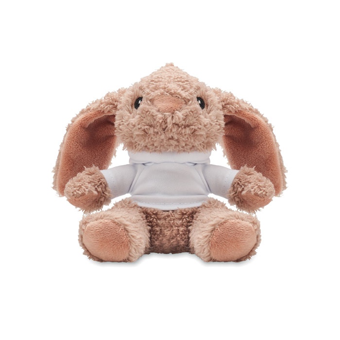 Lapin en peluche portant un pull à capuche. Idéal pour l’impression par sublimation.