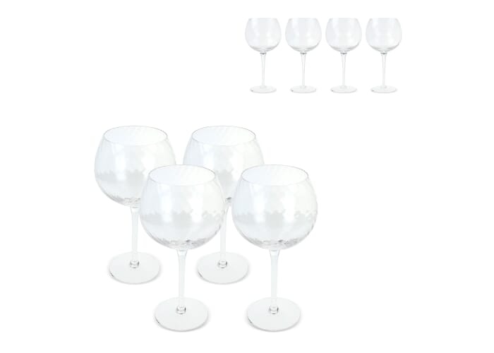 Ces quatre verres à vin Opacity sont fabriqués en verre transparent et présentent un magnifique motif en verre filé. Ce sont des verres à vin fins et transparents qui offrent un contraste parfait entre luxe et originalité. Design par Studio Byon. Livrés dans une boîte cadeau.