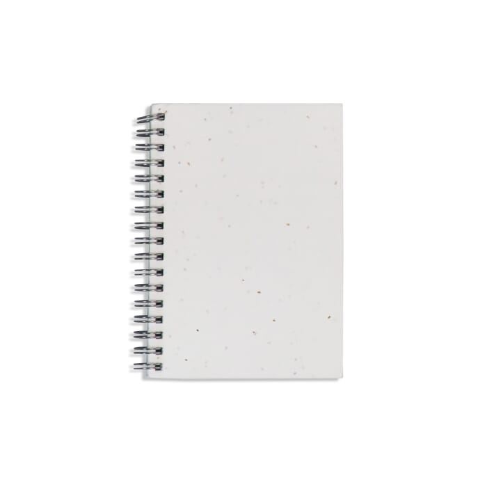 Joli carnet fait de papier semences. Mettez la couverture du carnet dans le sol et arrosez-la. Au fil du temps, les graines (mélange de lavande, marguerites, chrysanthème, menthe et tomate cerise) germent. Votre message s’épanouira littéralement, ce qui en fera une promotion durable et originale. Contient 100 pages de papier recyclé à carreaux.