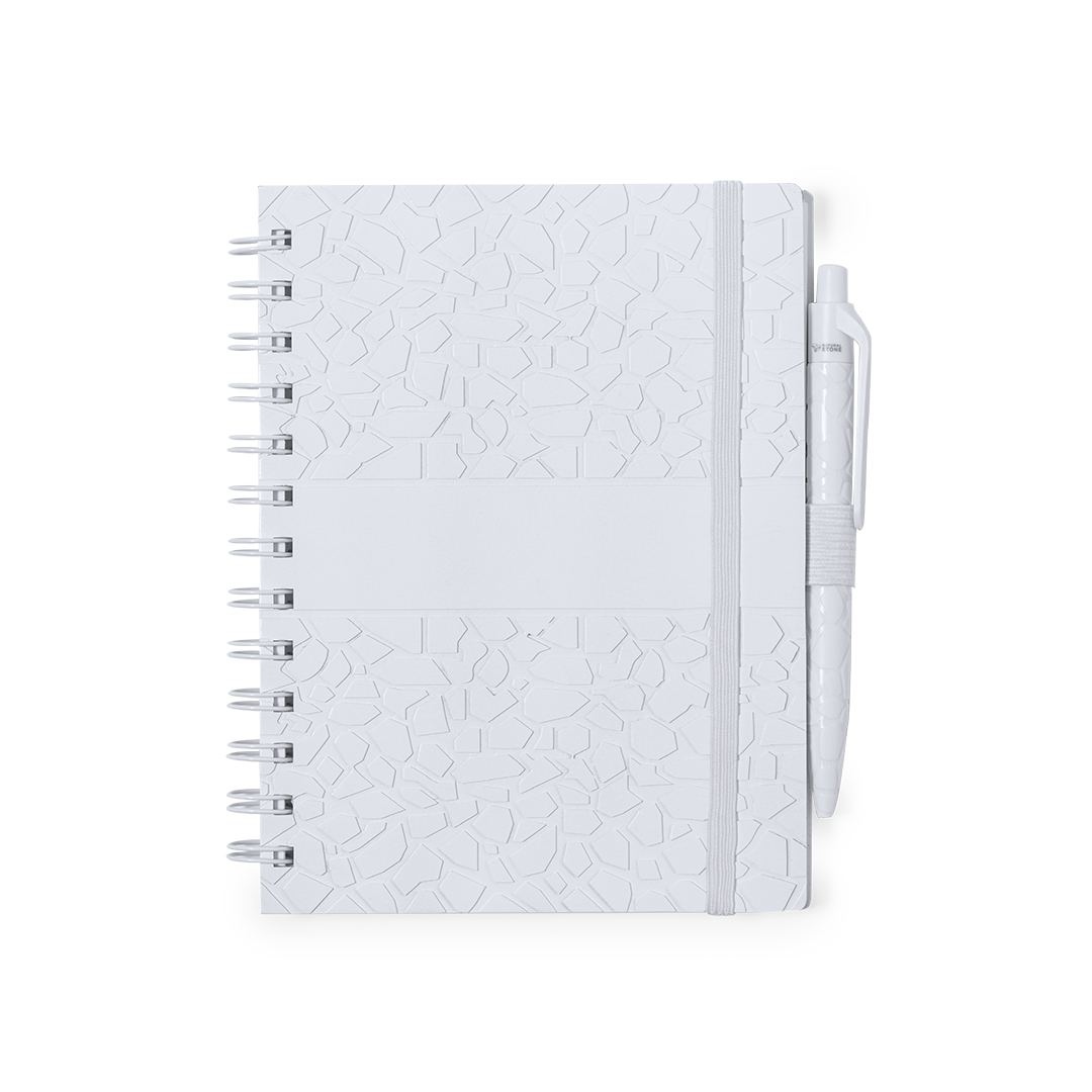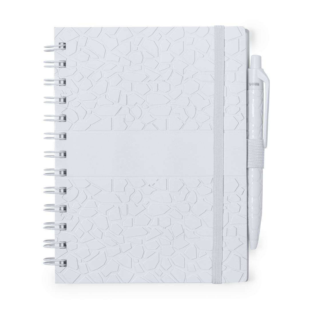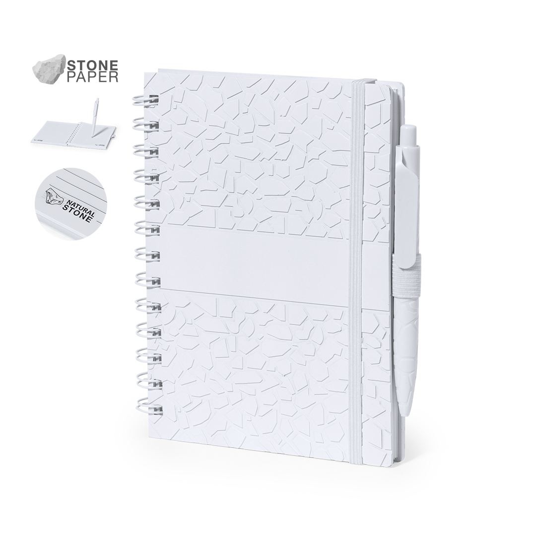 Ensemble carnet et stylo. Contenu:Cahier à anneaux avec couvertures rigides en extraits de pierre dans une élégante finition blanche et porte-stylo. Couverture au design unique avec relief en relief. Avec 70 feuilles de couleur blanche et disposées en une bande, avec le caractère distinctif de la pierre naturelle.Stylo à bille Nature Line avec mécanisme à bouton-poussoir. Corps découpé à l’emporte-pièce à base d’extraits de pierre naturelle, contribuant à réduire l’utilisation de plastiques, tout en offrant une finition lisse et résistante. En blanc et avec le logo Natural Stone sur la partie supérieure. Cartouche Jumbo et encre bleue.Le matériau utilisé dans la préparation du cahier est 100% recyclable et sans chlore, avec des propriétés imperméables, hautement résistantes et lavables, devenant ainsi une alternative écologique et durable au papier conventionnel, dont l’origine n’est pas traditionnelle et ne provient pas d’arbres.Présenté dans un sac recyclé individuel