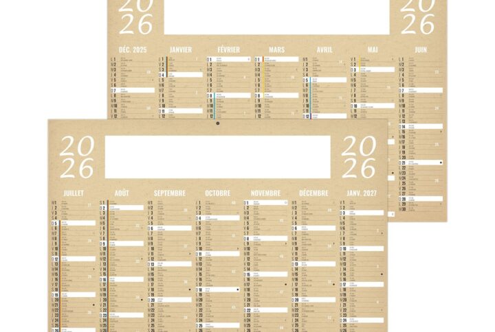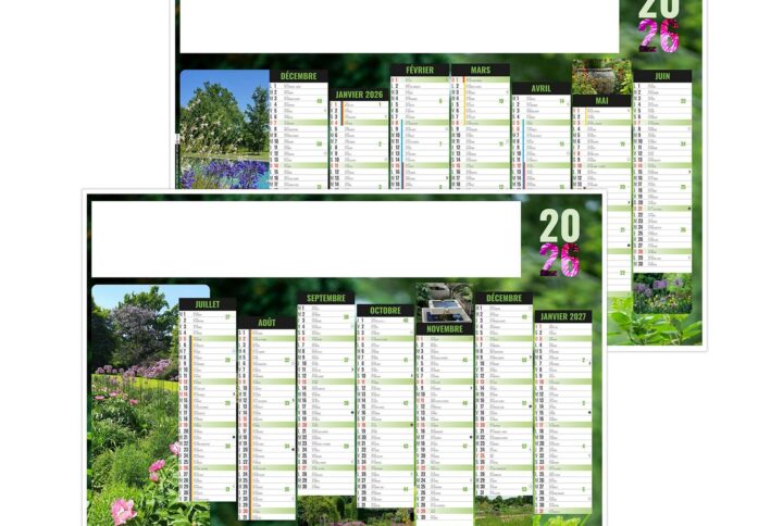Calendrier 7 mois par face. La grille comprend les Saints, n° de semaines, phases lunaires, congés scolaires et le compte et décompte journalier. Photographie Calendrier illustré de photos sur la France d’Hervé Sentucq et que vous pouvez personnaliser avec vos propres photos à partir de 100 ex. Repiquage La personnalisation est prévue dans la zone de repiquage qui se trouve dans la partie blanche. Impression recto-verso identique. Fichier à fournir par vos soins au format du repiquage en PDF sans fond perdu. Formats Disponible en 3 formats pour les contrecollés et en 4 formats pour les légers. Qualité Deux qualités possibles, en contrecollé (rigide, cartonné) ou en léger (souple). Papier couché satiné, qualité écriture finition MAT. Quantité Disponible à partir de 50 exemplaires pour le STANDARD CC et tous les LÉGERS SOUPLES et 100 exemplaires pour les MIDI CC et MINI CC. Délai 4 semaines pour les CC et 2 semaines pour les LÉGERS après accord du BAT. Réalisation du BAT (maquette, bon à tirer) sous 24 à 48 heures. Stock Toujours disponible.