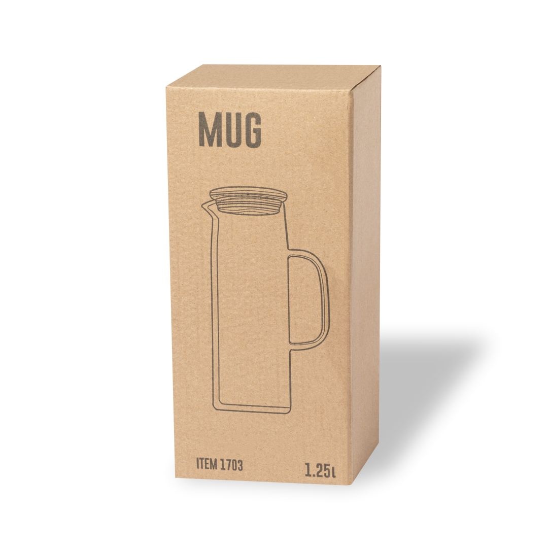 Pichet d’une capacité de 1,25 l, fabriqué en verre borosilicate, qui offre une résistance et une durabilité exceptionnelles, prolongeant sa durée de vie utile et pouvant être réutilisé d’innombrables fois. Bouchon en bambou avec ajustement serré. Présenté dans une boîte individuelle au design kraft.