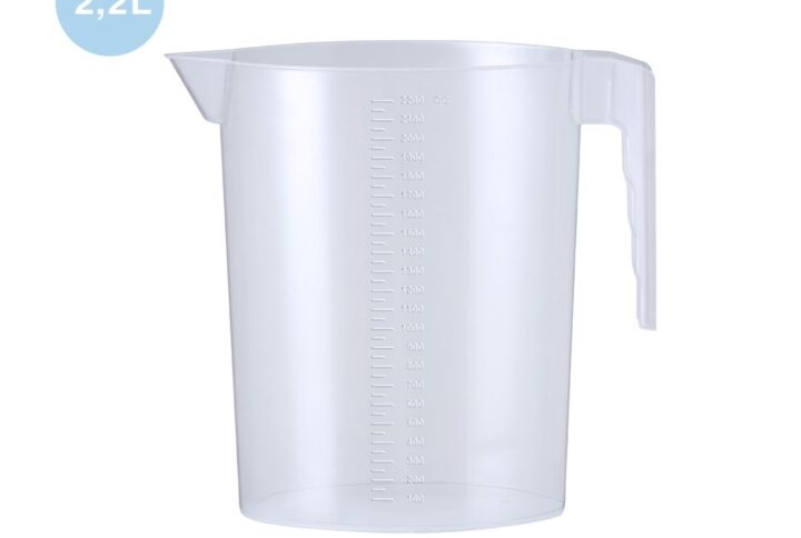 Pichet mesureur 4L fabriquée en PP résistant transparent avec poignée. Avec une jauge latérale en tranches de 100ml / 5oz et verrou sur le bord pour éviter les déversements.