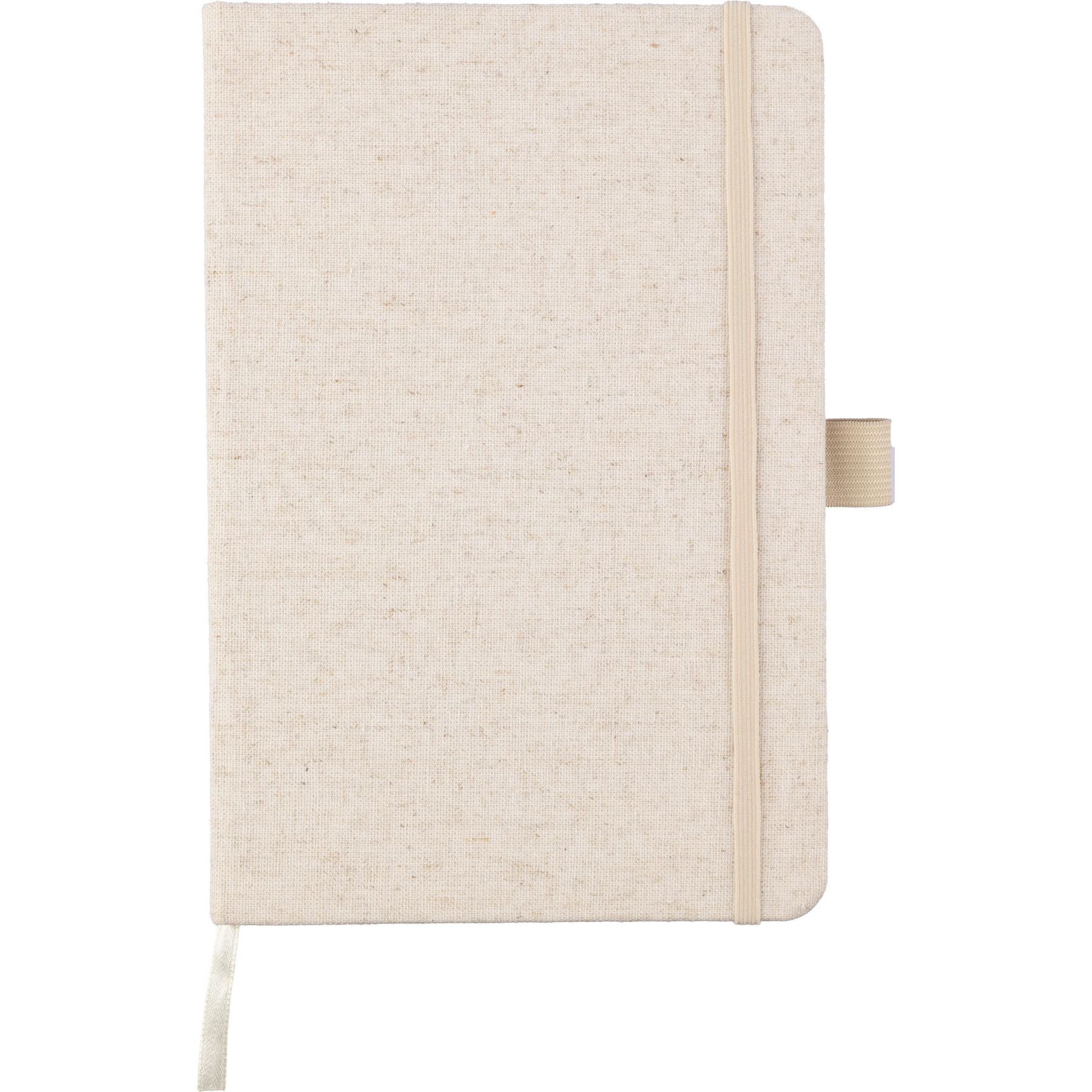 Carnet A5 en chanvre contenant 80 feuilles lignées avec fermeture élastique.