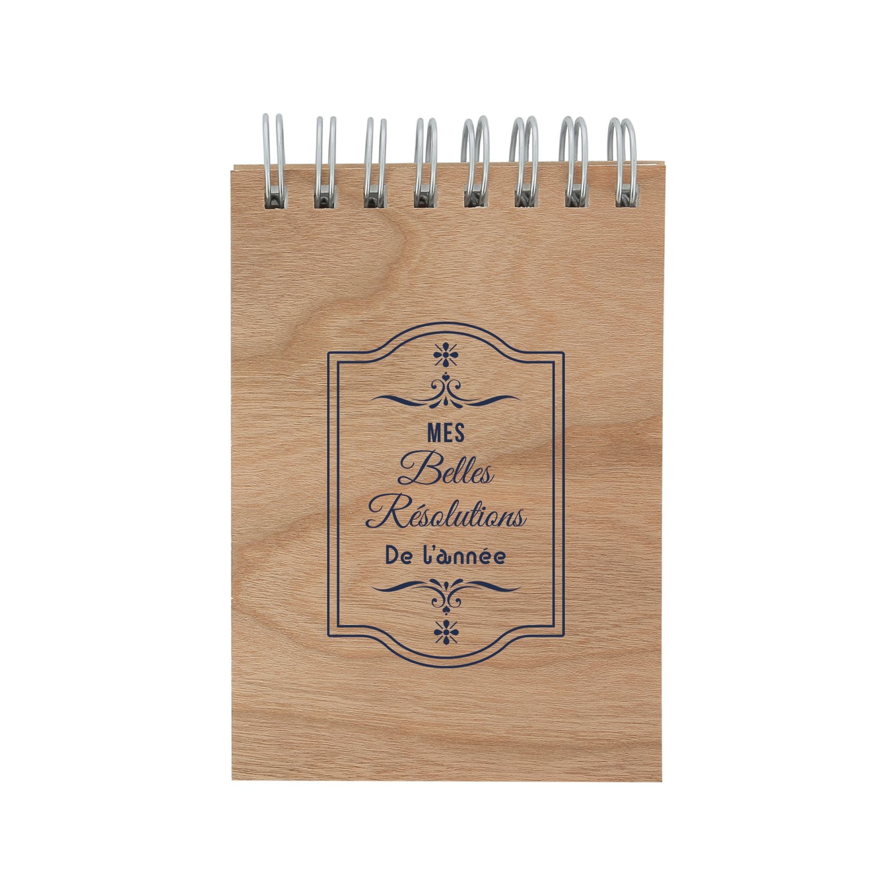 Matières :Couverture = Papier laser bois – Bois de Cerisie Bloc A7 = papier vierge, 70 feuilles en papier 100% recycl Spirales métalliques