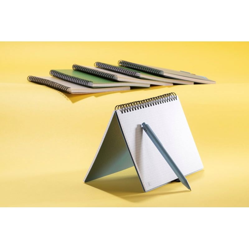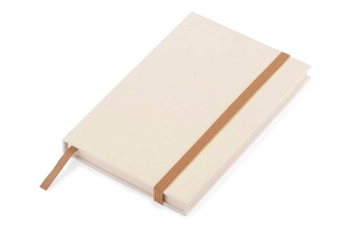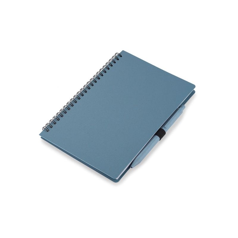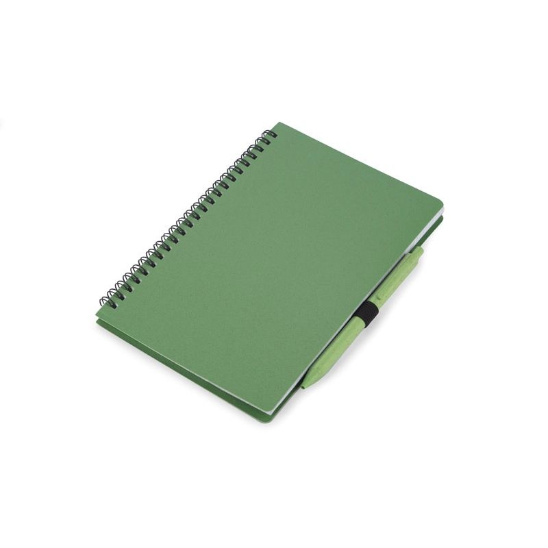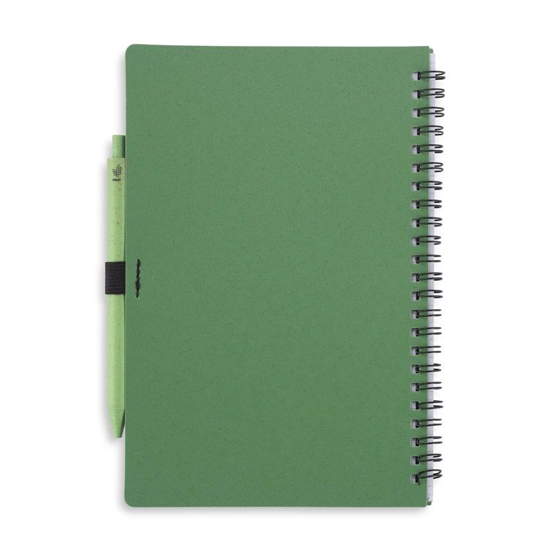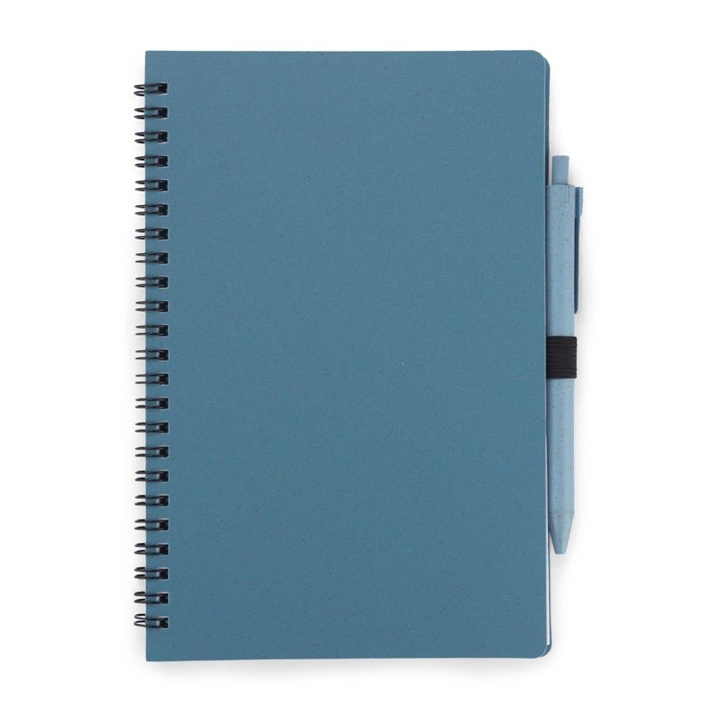 Carnet TRESA avec stylo, couleurs assorties à la couverture. Le stylo et la couverture du carnet sont en paille de blé. Un cahier à spirale de 70 feuilles quadrillées en papier recyclé. Format A5. Recharge pour stylo bleu.