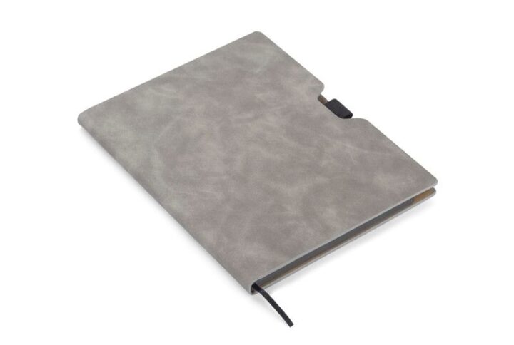 Calepin évoquant le style rétro. La couverture est faite en simili cuir et est disponible dans des couleurs intemporelles – noir et marron. À l’intérieur il y a deux calepins remplaçables : un en ligne, l’autre uni. Format A5, 80gsm.