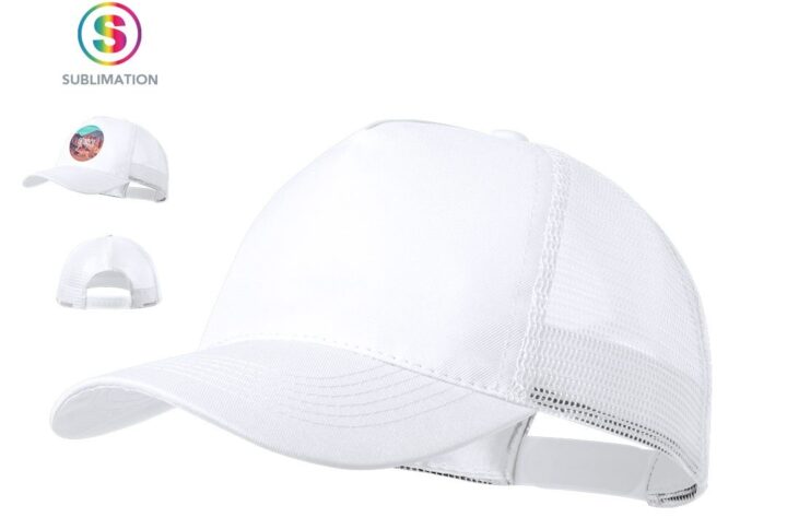 Casquette type trucker à 5 panneaux en 100% polyester, finition douce avec fermeture ajustable par velcro. Frontal blanc et corps/visière dans une gamme variée de couleurs vives. Spécialement conçue pour le marquage sublimation.