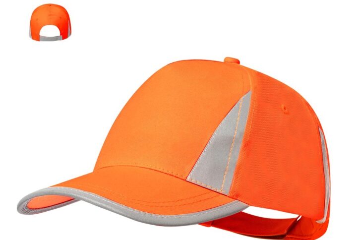 Casquette à 5 panneaux en coton avec bande réfléchissante sur la visière et le corps de la casquette. Gamme variée de couleurs vives, avec orifices de ventilation brodés et fermeture ajustable en velcro.