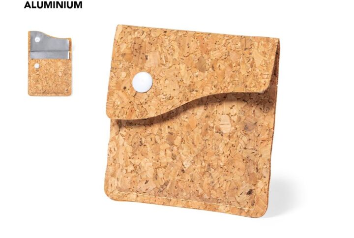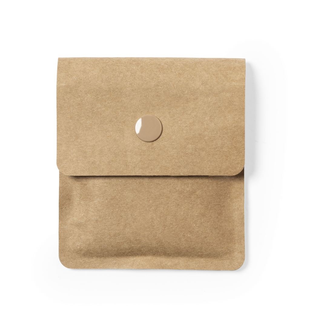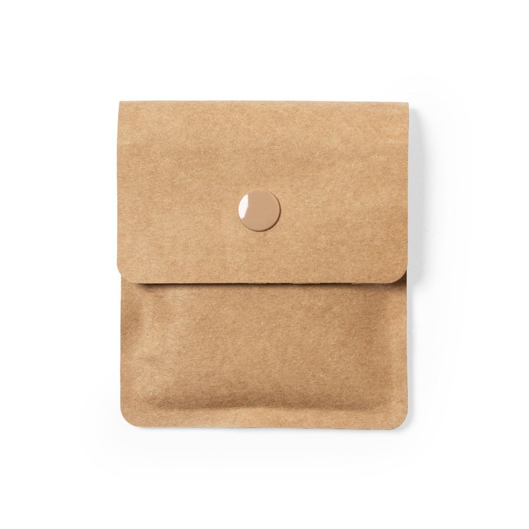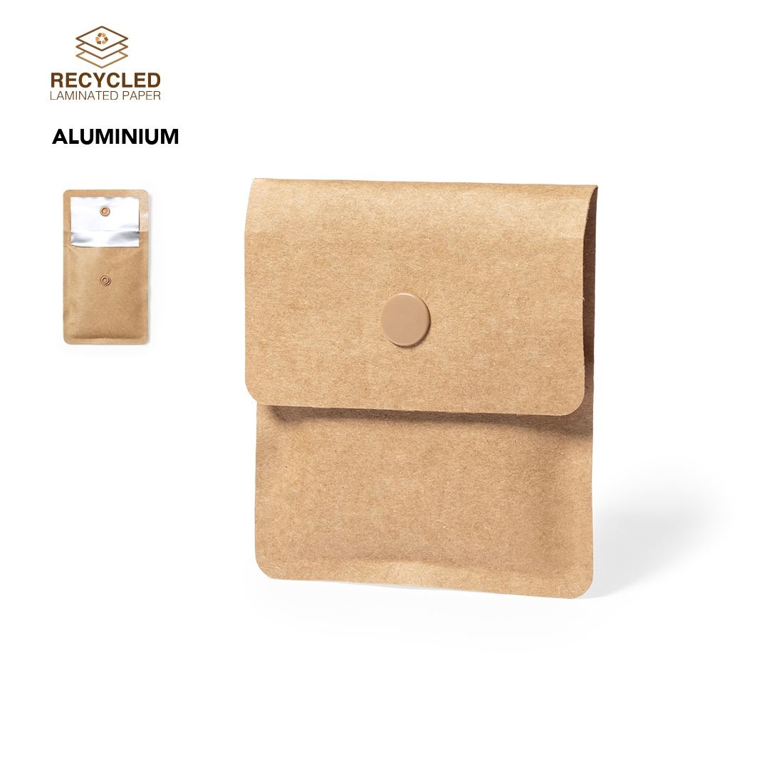 Cendrier de poche de la ligne Nature, avec extérieur en papier recyclé laminé et intérieur en aluminium ignifuge. Rabat avec fermeture à crochet assortie.