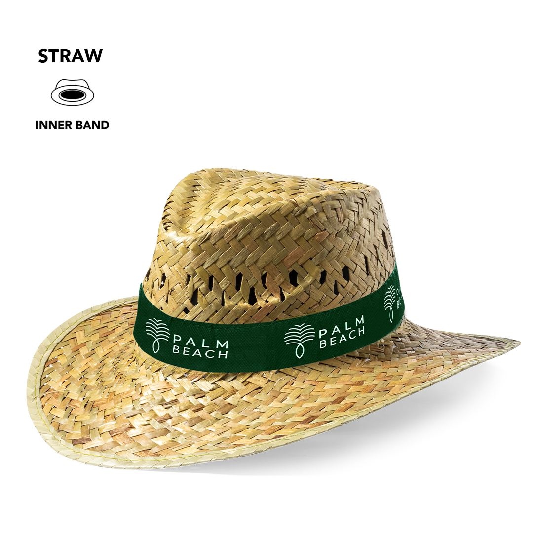 Chapeau de paille. Fabriqué avec de la paille tressée en vert naturel, sa façon de le confectionner le rend respirant. Il dispose d’un ruban intérieur pour le rendre plus confortable.