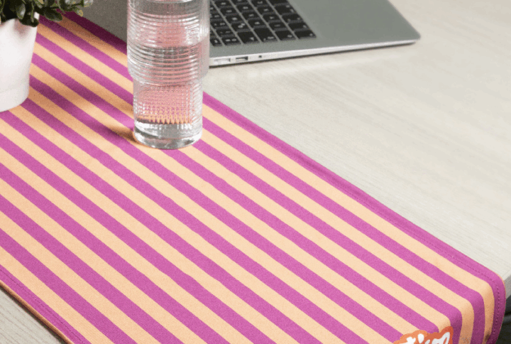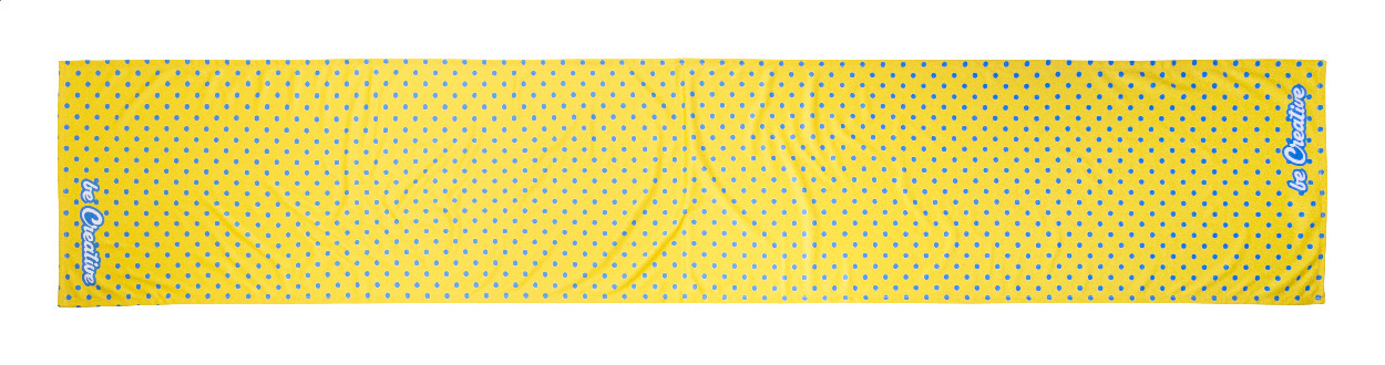 Chemin de table en microfibre RPET (170 g/m²) fabriqué sur mesure avec des graphiques imprimés par sublimation. Quantité minimale : 25 pièces.