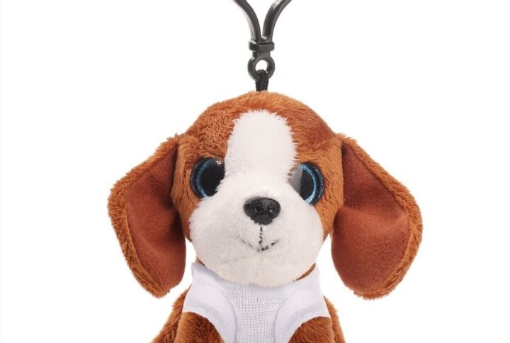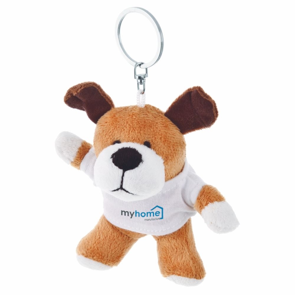 Chien avec T-shirt blanc pour l’impression, porte-clés (T-shirt sans impression emballé séparément)