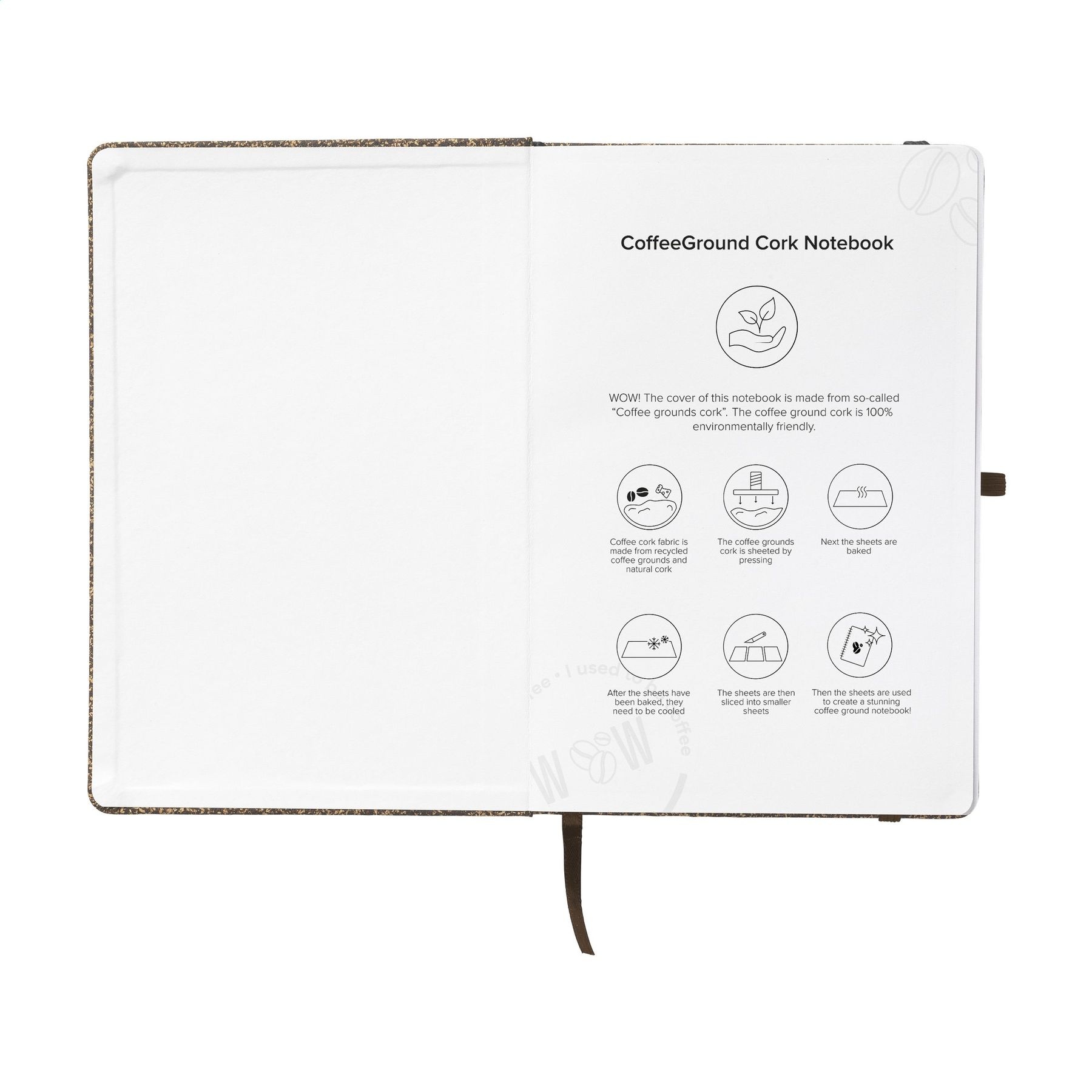 WoW! Carnet de notes au format A5. La couverture en carton certifiée FSC Mix est revêtue d’un mélange de marc de café, de liège, de polyester et de coton. Le résultat est une couverture robuste aux teintes variées de brun avec une apparence naturelle. Le carnet contient environ 96 feuilles/192 pages de papier blanc, ligné, recyclé et certifié FSC Mix (70 g/m²). Avec boucle à stylo, élastique de fermeture et ruban marque-page. L’utilisation de feuilles de thé usagées comme base pour la production de nouveaux matériaux, comme cette couverture, prolonge le cycle de vie des grains de café. En raison de l’utilisation de matériaux organiques, la couleur de la couverture peut différer légèrement selon le carnet/lot.