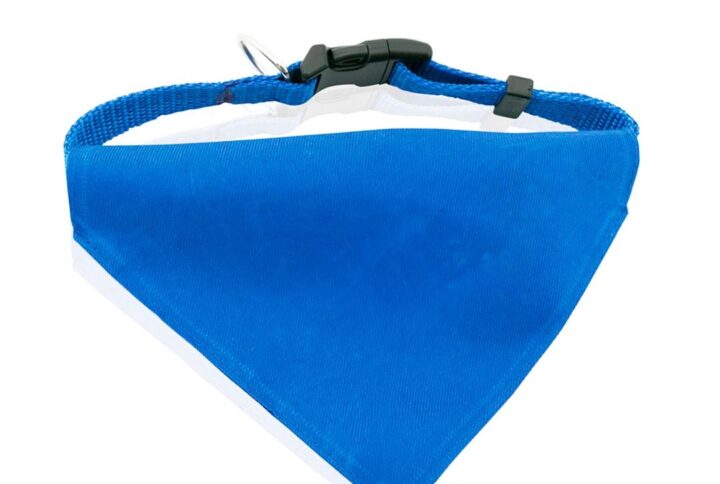 Collier pour animaux de compagnie en polyester souple et résistant aux couleurs vives. Avec ruban réglable, fermeture par clic et accessoire métallique pour ruban de promenade.