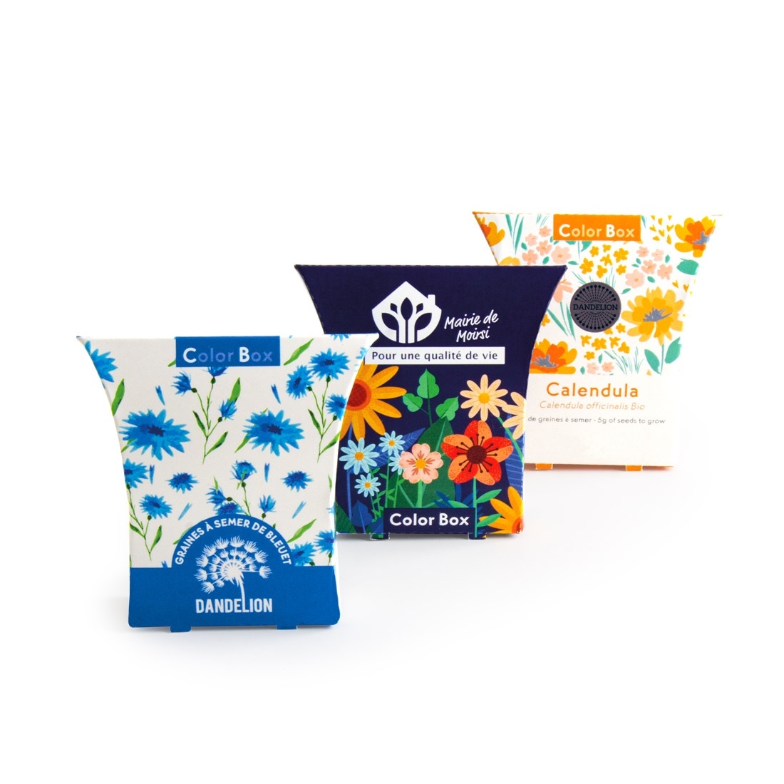 Et si, pour votre prochaine campagne publicitaire, vous ajoutiez une touche de couleur et de nature à votre communication ? Avec notre Color Box, c’est possible ! Cette idée cadeau écolo vous permet de transformer n’importe quel espace en un jardin multicolore. Il vous suffit de vous rendre dans la nature ou dans votre jardin, de choisir les couleurs de fleurs qui vous inspirent, puis de semer les graines de la Color Box. Bientôt, vous serez émerveillé par la richesse des couleurs naturelles de la nature.