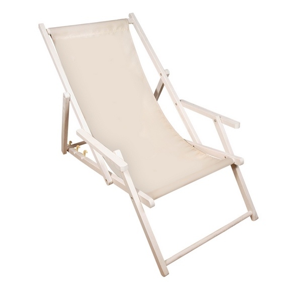 Transat publicitaire en version avec accoudoirs pour plus de confort. Grâce à ses dimensions standard de 140x57cm à plat la chilienne est très facile à stocker et transporter. La structure est réalisée en bois de hêtre massif naturel premier choix qui respecte la norme FSC et est equipée avec des protections plastiques pour la sécurité de l’utilisateur. La toile fixe en polyester 260gr est entièrement personalisable en sublimation ou en sérigraphie suivant le design à imprimer. Option de toile interchangeable. Livraison standard sous polybag unitaire ou carton unitaire en option. La quantité minimale est 5 pièces. Les frais de port à deviser séparément.