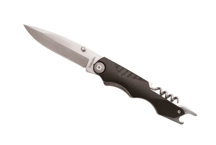 Couteau pliant avec lame en acier inoxydable 420 composée d’une partie de lame fine (pour les coupes précises) et d’une partie microdentée (pour les coupes difficiles). Manche en fibre G10 de couleur rouge et acier inoxydable. Ouverture/fermeture une main avec cran de sécurité de type Liner lock. Assemblage vissé Torx. Fonctions coupe-ceinture et marteau brise-vitre sur la mitre arrière. Livré dans un étui gris chiné en RPET.