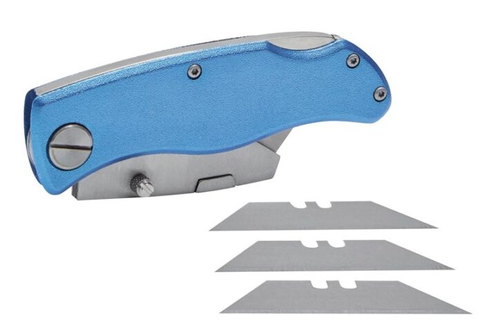 Cutter ECO CUT à déplier: avec lame remplaçable, y compris cinq lames de rechange, poignée ergonomique, poignée en bambou, clip pour la fixation à la ceinture