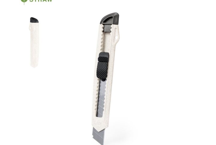 Cutter à lame large et manche ergonomique. Embout amovible pour régler la longueur de la lame.