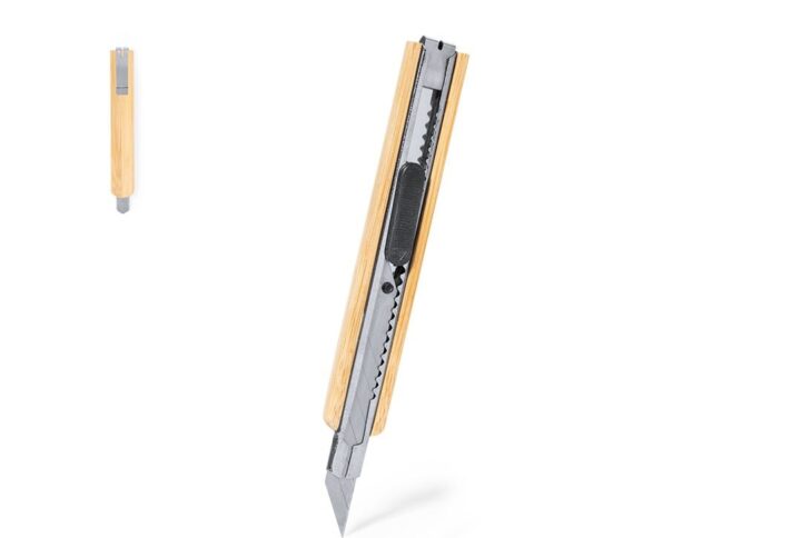 Cutter avec lame large fabriqué en canne à blé. Poignée de découpe ergonomique avec capuche amovible pour le réglage de la coupe de la lame, avec mécanisme de verrouillage pour plus de sécurité. Avec Logo canne à blé inclus. Présenté individuellement dans un sac en papier recyclé. La canne à blé encourage l’utilisation de matières premières naturelles, réduisant ainsi les émissions polluantes.