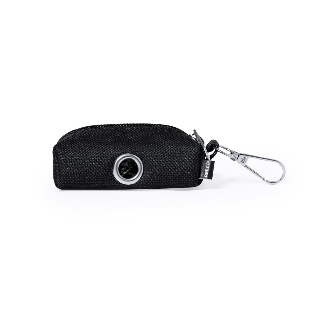 Distributeur de sacs pour animaux de compagnie en RPET. Design original en forme de sac à main avec fermeture éclair et un anneau métallique pour pouvoir retirer les sacs facilement. Transport confortable grâce à son mousqueton intégré avec 15 sacs biodégradables inclus. Disponible en différentes couleurs. Le matériau RPET est fabriqué à partir de plastique recyclé, ce qui favorise la réutilisation des déchets plastiques et contribue à la durabilité de la planète.