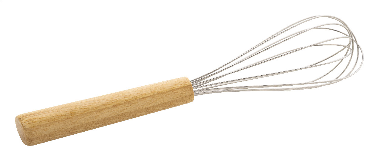 Fouet à œufs en acier inoxydable avec manche en bambou.