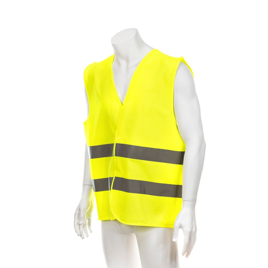 Gilet réfléchissant à haute visibilité, homologué selon les normes de sécurité CE. Avec double bandelette réfléchissante autour du corps et fermetures velcro. Taille unique pour adulte.