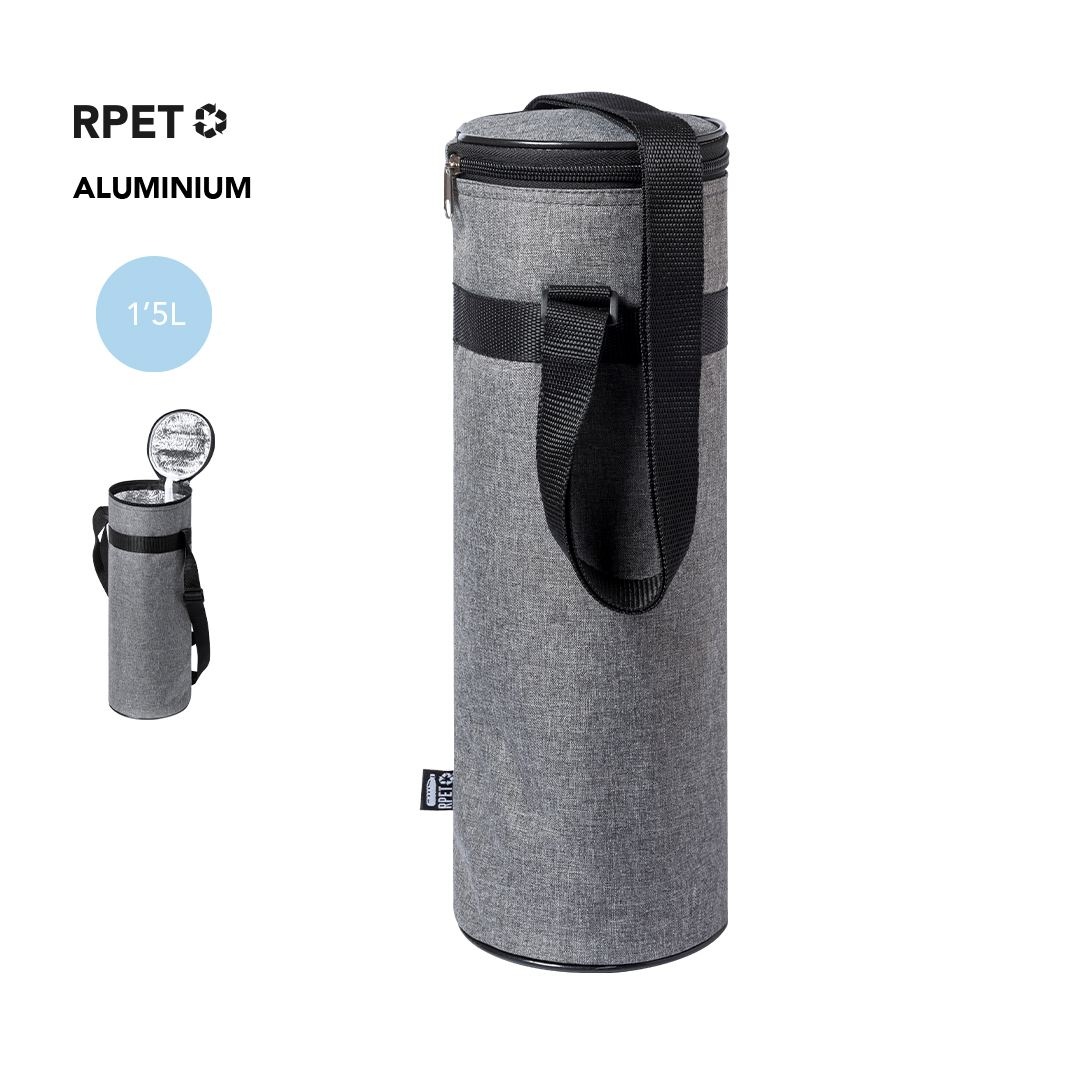 Glacière bouteille de la ligne Nature pour bouteilles jusqu’à 1,5l, en polyester résistant 300D RPET, fabriqué à partir de plastique recyclé pour favoriser la réutilisation des déchets plastiques et contribuer à la durabilité de la planète. Avec fermeture éclaire et bandoulière réglable confortable. Intérieur isotherme en aluminium, avec étiquette RPET à l’exterieur.