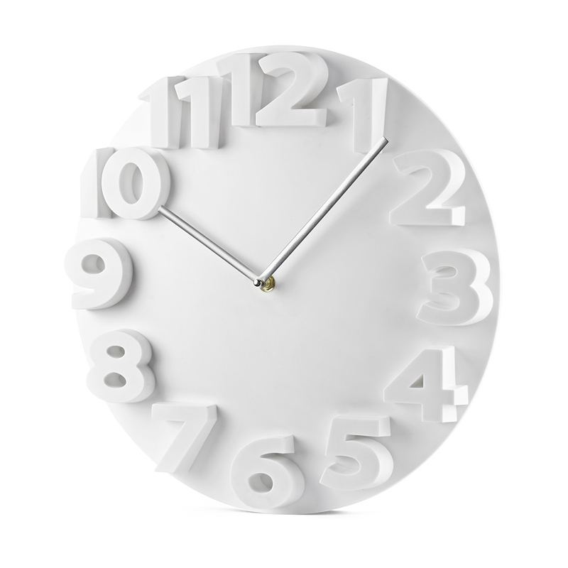 Grande horloge au design moderne. Grâce aux chiffres en relief l’heure est bien visible.