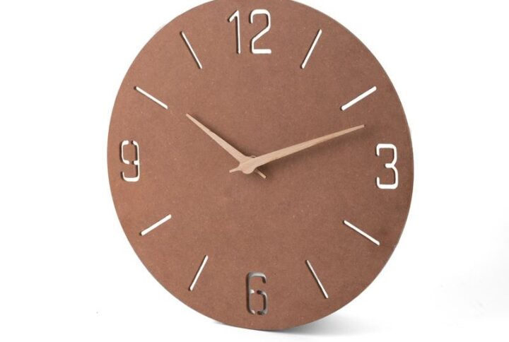 Grande horloge au design moderne. Grâce aux chiffres en relief l’heure est bien visible.