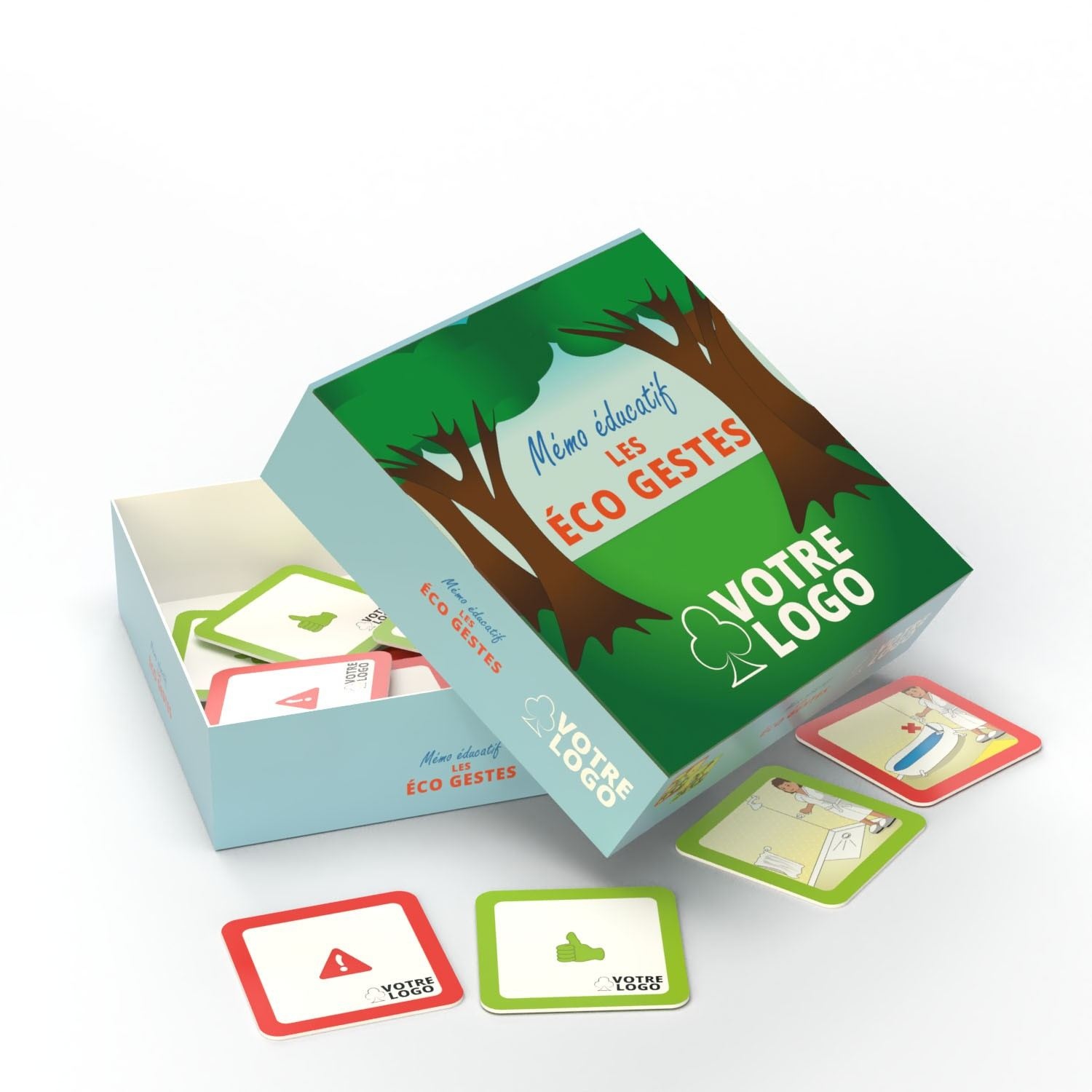 Jeu de 30 cartes (15 paires), format 60x60mm, coins arrondis, impression quadri recto/verso. Carton 1,2mm vernis standard recto/verso.