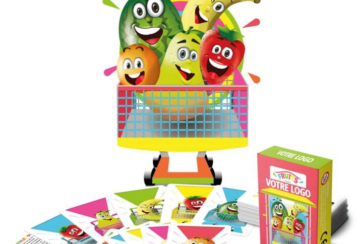 Jeu de 30 cartes (15 paires), format 60x60mm, coins arrondis, impression quadri recto/verso. Carton 1,2mm vernis standard recto/verso.