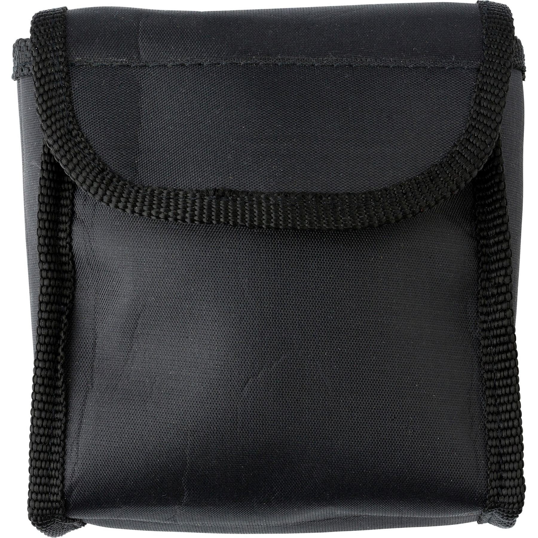 Jumelles 4 x 30 en gomme et plastique, livrées dans un étui en nylon.